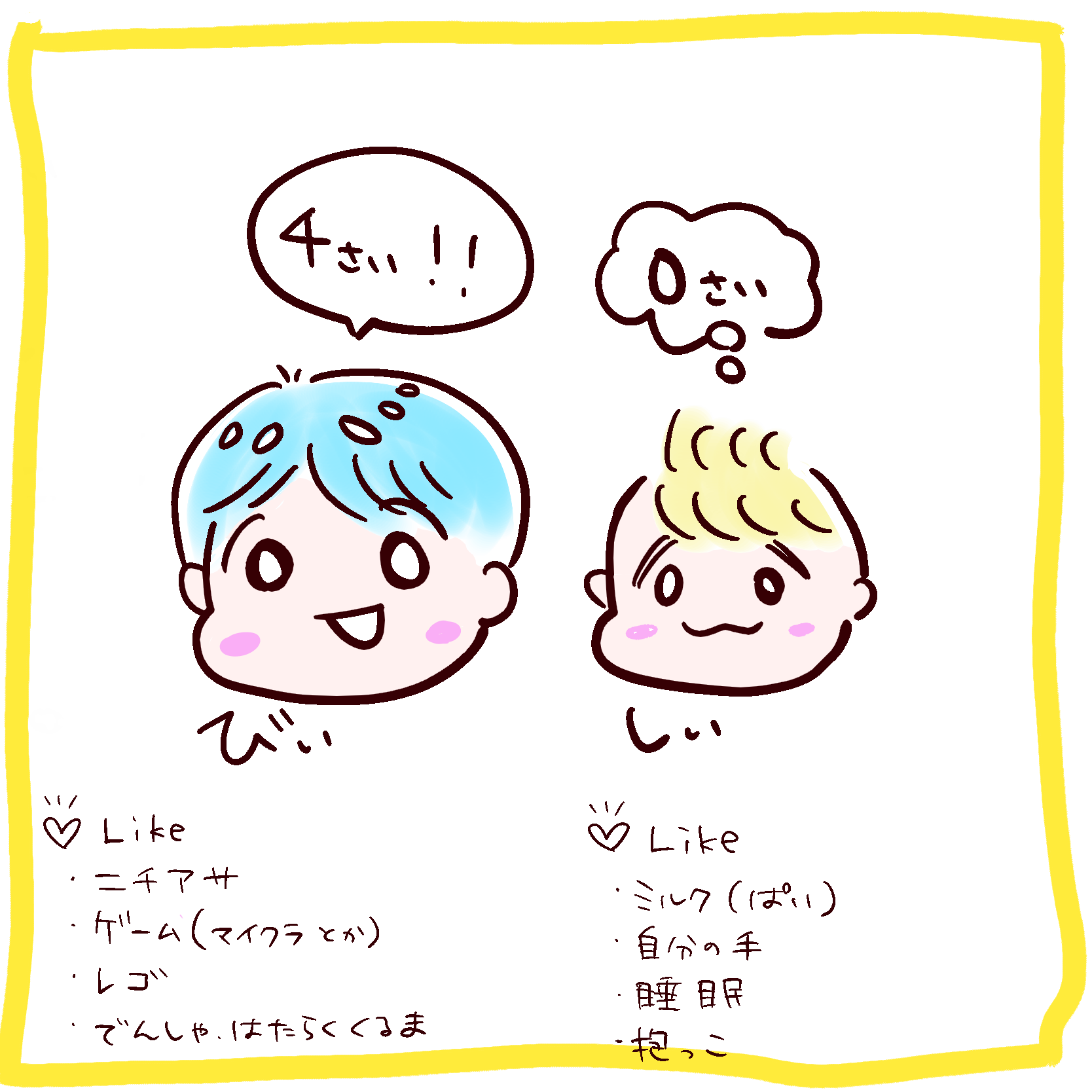 4歳兄、びぃくん(今年5歳になります。)と初夏に誕生した妹しぃちゃん。