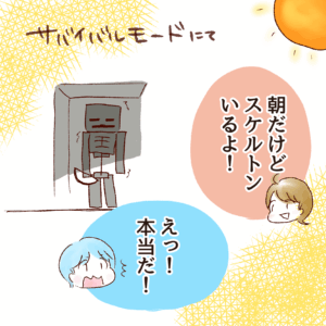 朝、拠点の外に出てみると岩壁の影に1体、日の光に焼かれずに生き残っているスケルトンを発見したところから今回のお話は始まるのですが、 たまにこんなケースがありまして、朝になっても生き残ってたり、洞窟なんかには結構昼夜問わずいます。