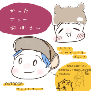端っこに描いてますが今年2月に雪遊びで酷使されたびぃくんのポンポンニット帽は無惨な姿で役目を終えまして、まだ雪が降るので帽子探しに回ったんですが本当にどこにもない。