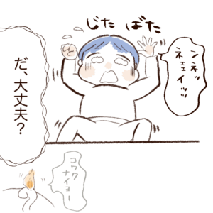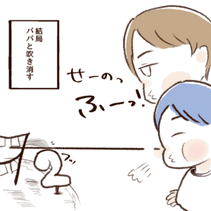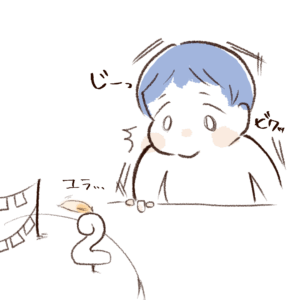 いきなり1歳すっ飛ばしてなぜ2歳の誕生日を描いたかと言うと、蝋燭に怯える様がちょっと面白くて印象に残っていたから。