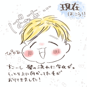 夫も私もくせっ毛ではないけど微妙に違うので、髪質の遺伝はどんなもんかなと思っていたのですが、