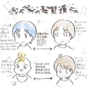 我が家の髪の毛の遺伝もこんな風に分かれていてなかなか面白いです。