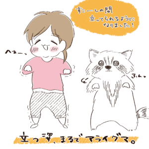 本当に最近、手放しで立っちできるようになりました。