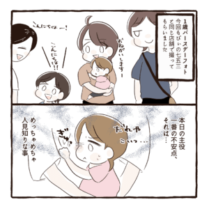 びぃくんはハーフバースデーの時だったのであまり心配なかったのですが、しぃちゃんのこの月齢(性格の違いもあると思いますが)ある問題がこの撮影を難航させる原因になってしまいました…。