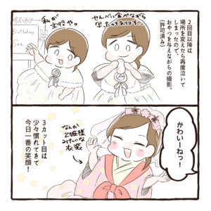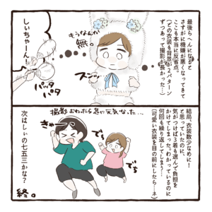 衣装も和装、洋装、着ぐるみと3着選んでしまったため、予想以上に時間も奪われしぃちゃんの集中力も切れてしまってそこは本当に申し訳なかったです。