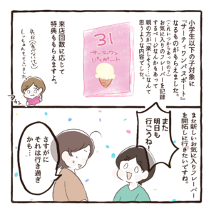 小学生以下限定で、『サーティワンパスポート』という冊子も配布しているみたいでしたので、もらっておくといいことあるかも?!