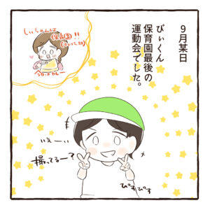 先日(と言っても1ヶ月ほど前になりますが)びぃの通う保育園でも運動会がありました。