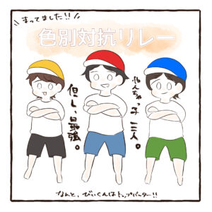 毎年恒例の色別対抗リレー、競技中だろうが見つければ親の方見ながらめちゃくちゃ笑顔で走っていくんですよねみんな…