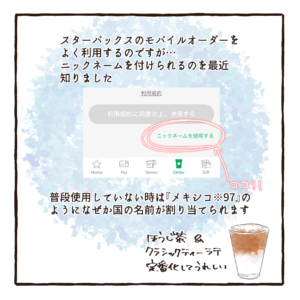 【日常】モバイルオーダーでのやらかし はるの日記 X Bluesky Facebook はてブ LINE コピー 2024/7/262025/9/26 閲覧頂きありがとうございます! ラン活のお話はこちら 最初から読む スタバでオーダーする際に付けられるニックネーム、指定していないとなぜか国名が印字されていたので、何も考えずに入力してしまったのでした… (プルャ、とはちいかわのうさぎの発する声の一つです) それにしても店員さんも発音が良かったな… 店員さんは確認すべきことをしたから何も悪くはないんだけどね本当に。 また来店したら『プルャ様きた!』ってスタッフ間で呼ばれてそう、自分。 ☝️☝️☝️☝️参加しています! よければポチッと応援いただけると嬉しいです!🤗
