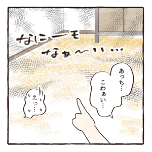 今回は確実に『見えてる』感じで怖くなり…(描いてはいませんが二階窓の外を指していることも)