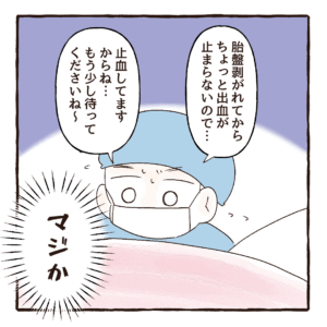 胎盤が剥がれた後と描きましたが、この胎盤もなかなか出て来なくて処置してもらった気がします。