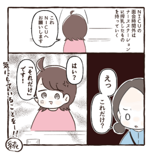 私の出産記録 〜しぃちゃんNICUへ〜⑥ 産前産後 X Bluesky Facebook はてブ LINE コピー 2024/11/12025/9/26 閲覧頂きありがとうございます! 前回のお話はこちら 最初から読む 容赦ない看護師の一言!! こちらの総合病院はスタッフに本当に余裕が無さそうな人が多く、この他に心無い言葉や扱いを受けたことがいくつか…。(私だけじゃなく同室の人も) 忙しいのはわかるんですが…。 1日3回会えたとはいえ、保育器越しにしか会えない我が子のことでメンタルやられてるのに。 この看護師さんもそんな事知らんわ、なんでしょうけどね…。 次回のお話はこちら ☝️☝️☝️☝️参加しています! よければポチッと応援いただけると嬉しいです!🤗