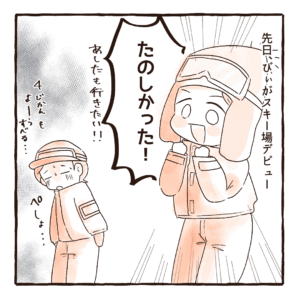 冬休み中に夫が事前体験でスキー場にびぃを連れてってくれたのですが、