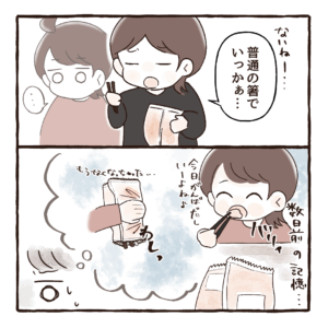 何回かびぃくんにお菓子触った手でコントローラー触られたことがあるので、その時は素手派のびぃくんに箸を勧めてみました。