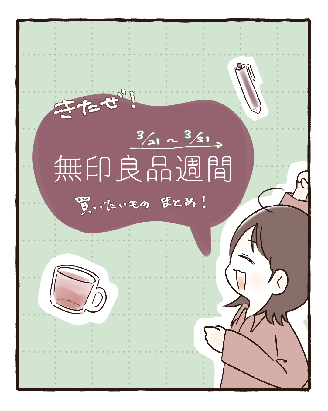 【無印良品週間】きたぜ!買いたいものまとめ 購入品レポ X Bluesky Facebook はてブ LINE コピー 2025/3/212025/9/26 閲覧頂きありがとうございます! せいろ周りのお話はこちら! もう本日から始まってますね! 本当に欲しいものだけ書いていたらただのお買い物リストになっちゃった…。 他にはキッチン用品の野菜保存袋とかは必ずストックしています。 野菜を入れたらちゃんと口を閉じるのがコツです。 実際に買ったものもレポしたいな! 次回のお話はこちら ☝️☝️☝️☝️参加しています! よければポチッと応援いただけると嬉しいです!🤗