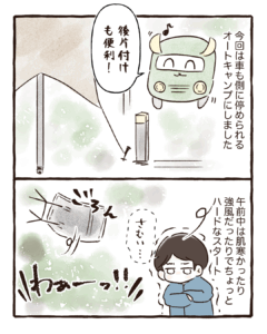 前半は主にテントの中でゆっくりしたりお散歩したりゆっくり過ごせました。