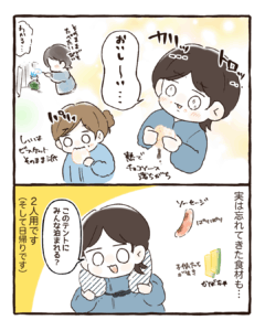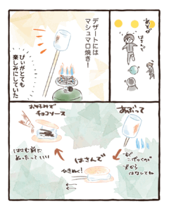 しぃちゃんが産まれる前にデイキャンでやったスモアをびぃくんはとても気に入ったようで、今回も用意しました!