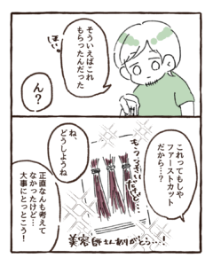 【しぃ3歳】初ヘアカットへ 成長記録 X Bluesky Facebook はてブ LINE コピー 2025/6/252025/9/26 閲覧頂きありがとうございます! 前回のお話はこちら 厳密に言うと実は少しだけ自宅で後ろ髪カットしたことがあったので初めてではなかったのです。 ですが美容師さんの心遣いが嬉しかったのでありがたく大事に保管しています! びぃくんのはそもそも伸びるまでだいぶ年数あったので、ファーストカットのことをすっかり失念していました。 今からでも遅くはない、伸びたら少し拝借しておくか…? 次回のお話はこちら ☝️☝️☝️☝️参加しています! よければポチッと応援いただけると嬉しいです!🤗