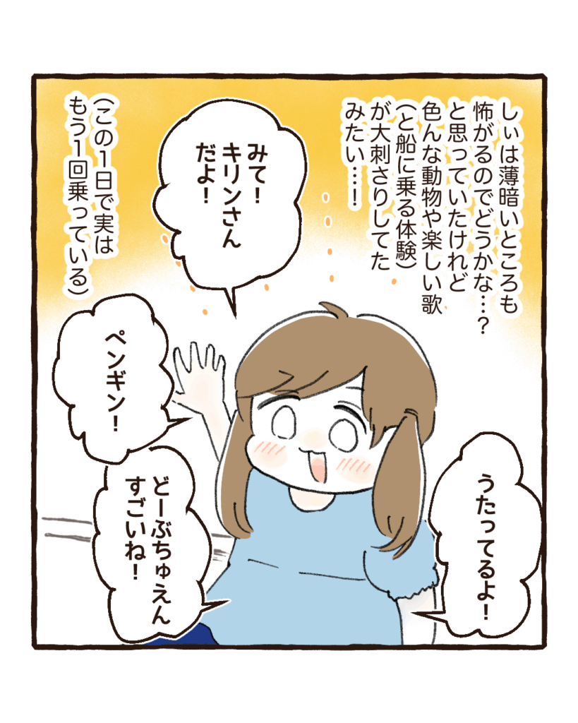 しぃちゃんも初めは(とてもビビりだから)怖くないかな?と心配していましたが、降りた後すぐ「もっかい乗りたい!」と気に入ってくれてよかったです。