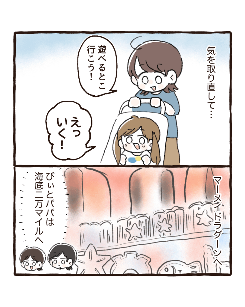 事前にあるとはわかっていたものの、「海の中」だからか雰囲気はいいが子どもには暗くてちょっと怖かったらしい。