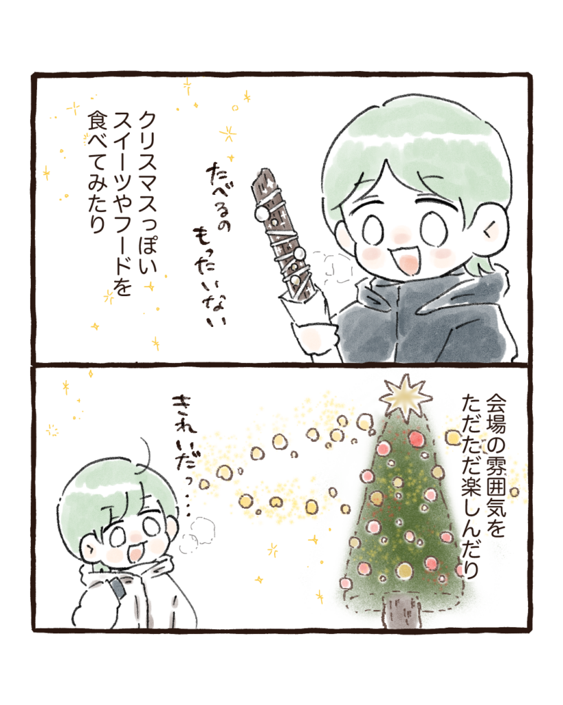びぃだけがとってもクリスマスっぽいチュロスを頂いて嬉しそうでしたが、しぃちゃんはとにかく震えていて(プラス私も寒がり)