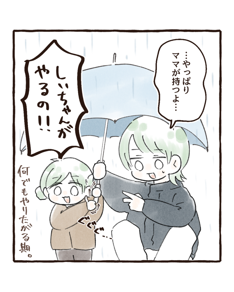 【三歳】任せたいけど…! 子供達の話 X Bluesky Facebook はてブ LINE コピー 2026/2/20 閲覧いただきありがとうございます! ついに、きた…!『なんでもやりたい!』 エレベーターのボタンも、荷物持ちも、スーパーのお手伝いカートも、なんでも『しぃちゃんがやる!』 しかし雨の日はきつい…!そんな時は中腰になるか、自分が傘に入るのは諦めたりしています。 もちろん現在小学生のびぃくんも通ってきた道だし、なんなら今もどっちがボタンを押すかで争う事も…。(そんな時は行き帰りで順番にお願いしています) これも成長ということで手を出し過ぎず見守ることにします! 参加しています! よかったらポチッとしてくれると嬉しいです